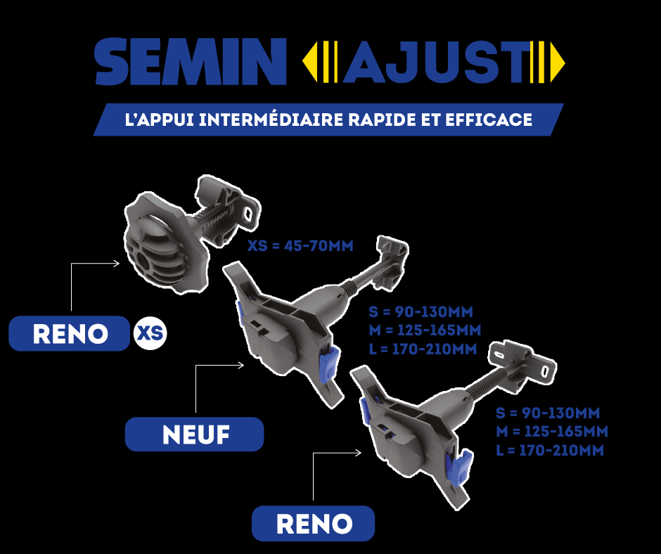 - SEMIN AJUST RENO XS : amplitude de 30 à 55 mm, adapté aux espaces réduits.